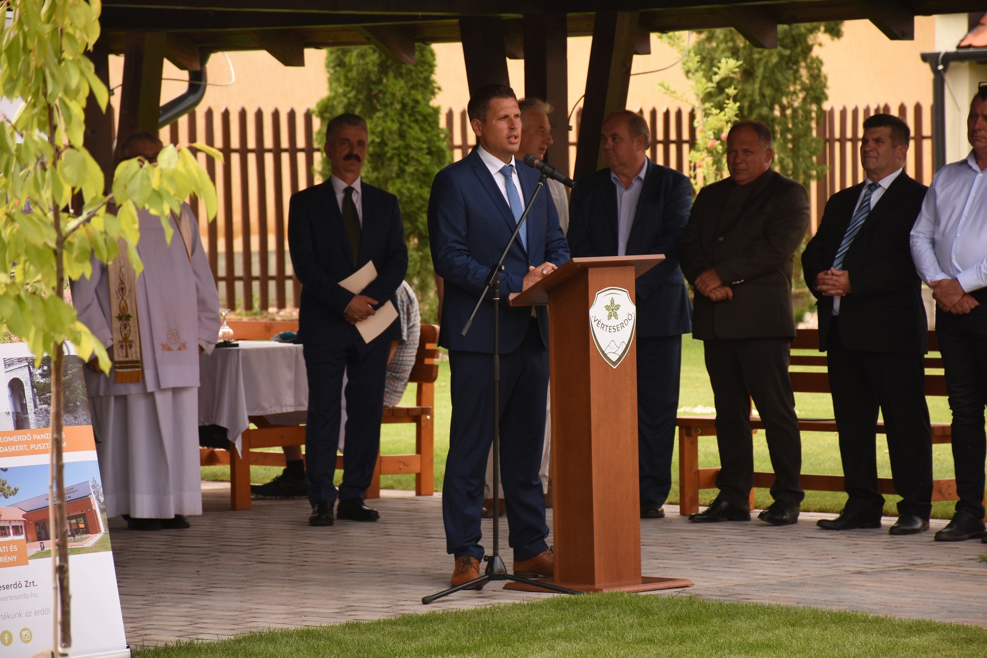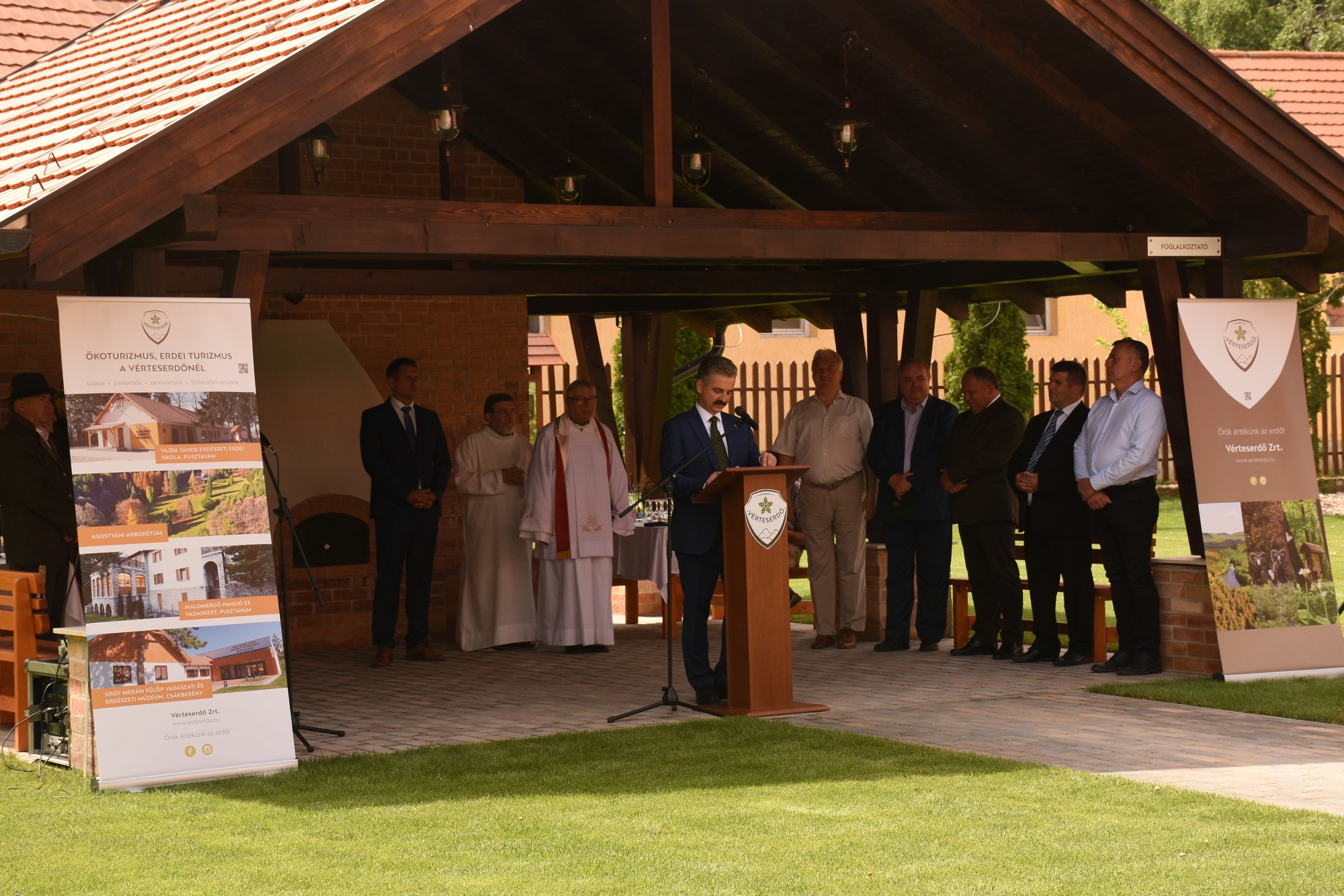 Semjén Zsolt miniszterelnök-helyettes köszöntőjében elmondta, a létesítmény szellemisége illeszkedik a vadászati világkiállítás “Egy a természettel!” jelmondatához. Kőhányás az ország egyik legcsendesebb helye a Vértes belsejében, ahol a látogatók megtalálhatják a természetbe visszatérés felszabadító élményét – fogalmazott.