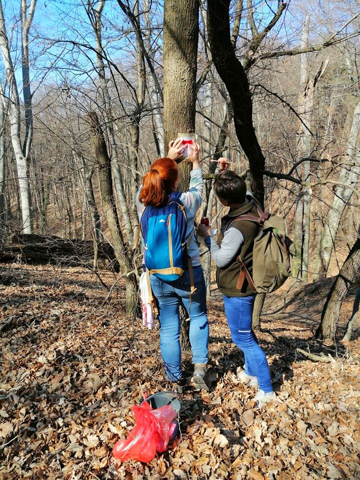 Kollégáink, a Komárom-Esztergom Megyei Természetjáró Szövetség jelzésfestő szakemberei közreműködésével festették fel a tanösvény hivatalos jelzését, a piros T betűt, hogy minden látogató magabiztosan teljesíthesse a túrát. Ezúton is köszönjük a lelkes segítséget!
