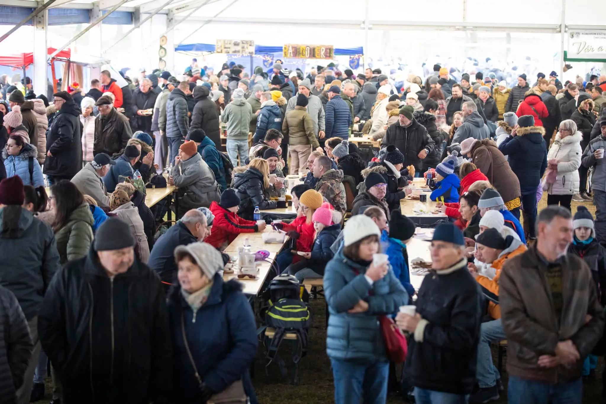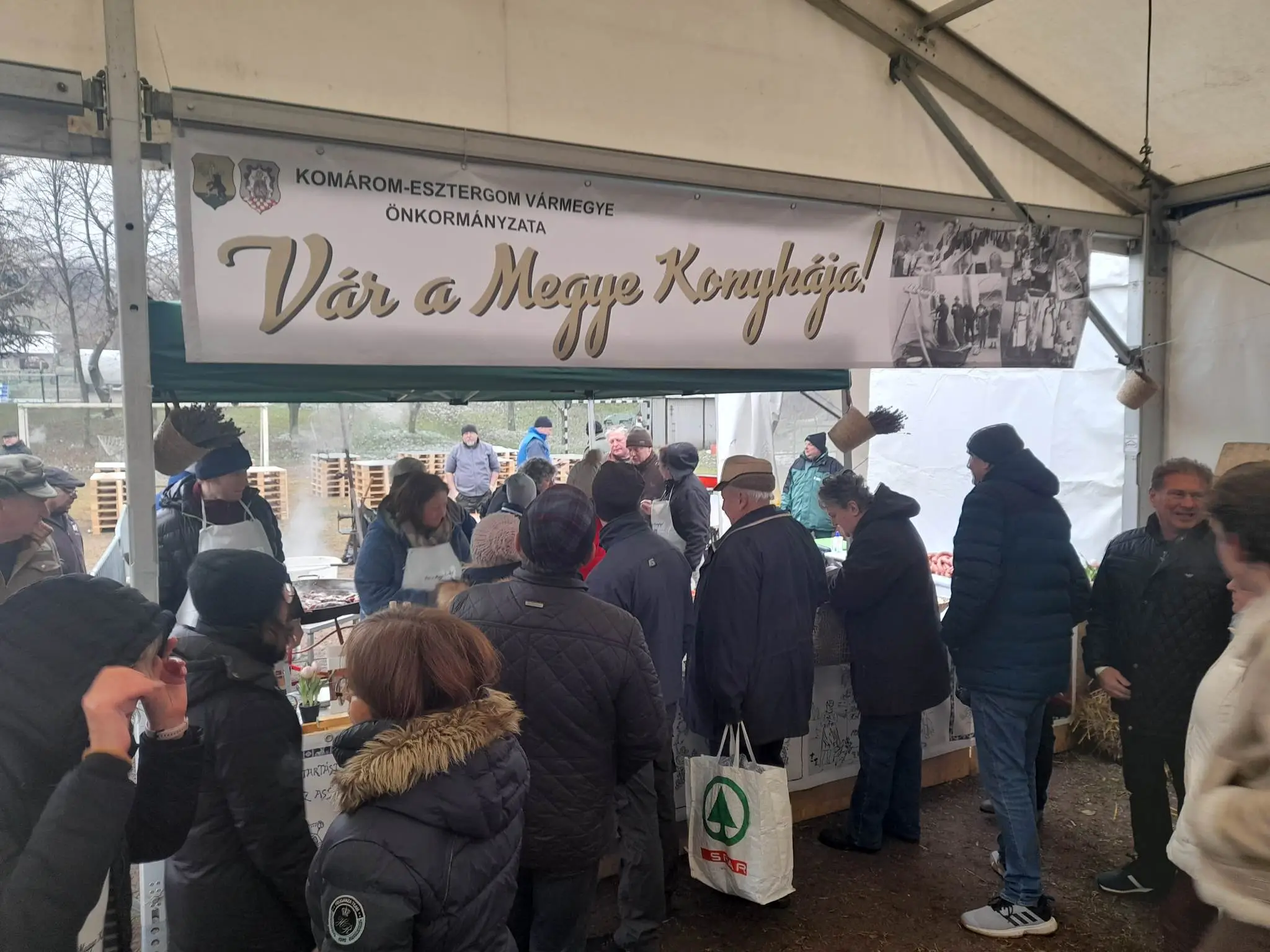 Ezerhatszáz forintból kóstolójegyet lehetett vásárolni, a cserébe kapott disznótorosból pedig jól lehetett lakni. A „sátoros”, kulináris rendezvényt több ezren látogatták, nem csupán a környező településekről, de messzebbről, Budapestről, Győrből is érkeztek vendégek. A színpadon hagyományőrző együttesek, csoportok léptek fel, akik jórészt a böllércsapatokat kísérték el a rendezvényre. Amíg a felnőttek a disznóvágás feladatait végezték, a gyerekek a sportcsarnokban kialakított játszóházban találhattak szórakozást. Nagy Csaba Vértesszőlős polgármestere elmondta, évekkel ezelőtt az önkormányzat már rendezett disznóvágást, de akkor csak egy sertést vágtak élménydisznóvágás jelleggel, a Pátria Faluközösségi Egyesülettel. – Arra gondoltunk, hogy felfejlesztjük ezt a hagyományt, a környékbeli településeket is meghívtuk, s már az első közös disznóvágás jól sikerült: hét település vett részt rajta, idén pedig már 12 településről érkeztek csapatok. Testvértelepüléseinkről is érkeztek vendégeink a szlovákiai Udvardról, Gyimesbükkről, Erdélyből és Muhr am See-ből, Németországból is. A csíkrákosi csapat, akik szintén itt vannak, a férfikórusunkkal ápol kapcsolatokat – tette még hozzá Nagy Csaba polgármester.