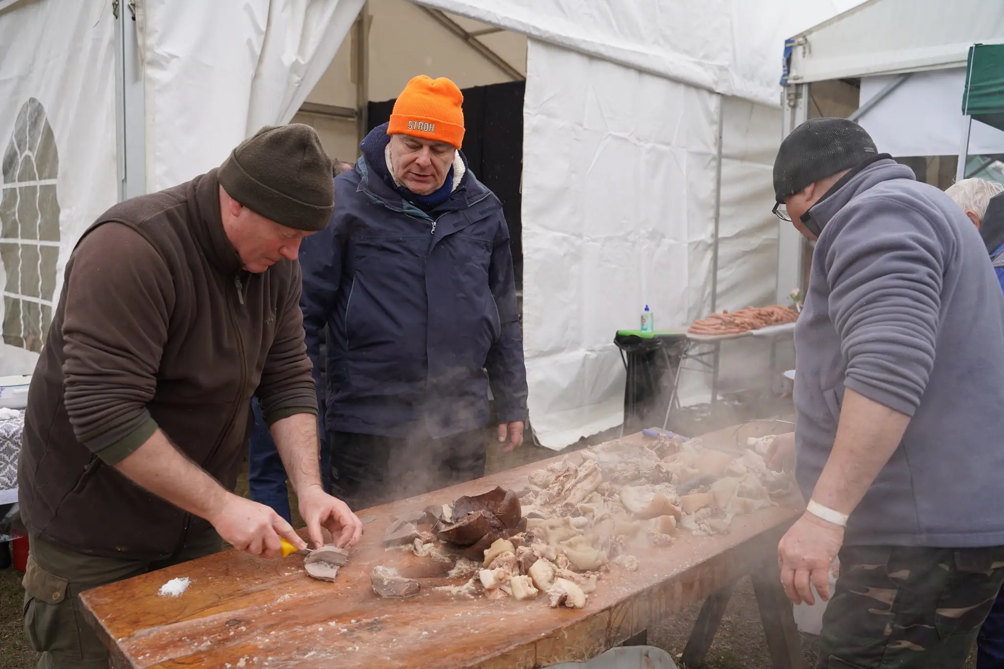 Szombaton már kora hajnalban lehetett látni és hallani, hogy készül valami: disznóvisítástól volt hangos a sportpálya és környéke, ahol az eseményt rendezték. A feladat roppant „egyszerű” volt, csapatonként egy-egy sertést kellett feldolgozni, idén erre 12 csapat kapott lehetőséget. Gyorsan és szakszerűen oldották meg a feladatot a böllérek és segítőik, a mintegy 160 kilogramm körüli jószágokat a farkuktól a fülükig feldolgozták, ebédre már hurkát, kolbászt, sülteket, toroskáposztát és persze legelőbb sült vért kóstolhattak az eseményre kilátogatók.