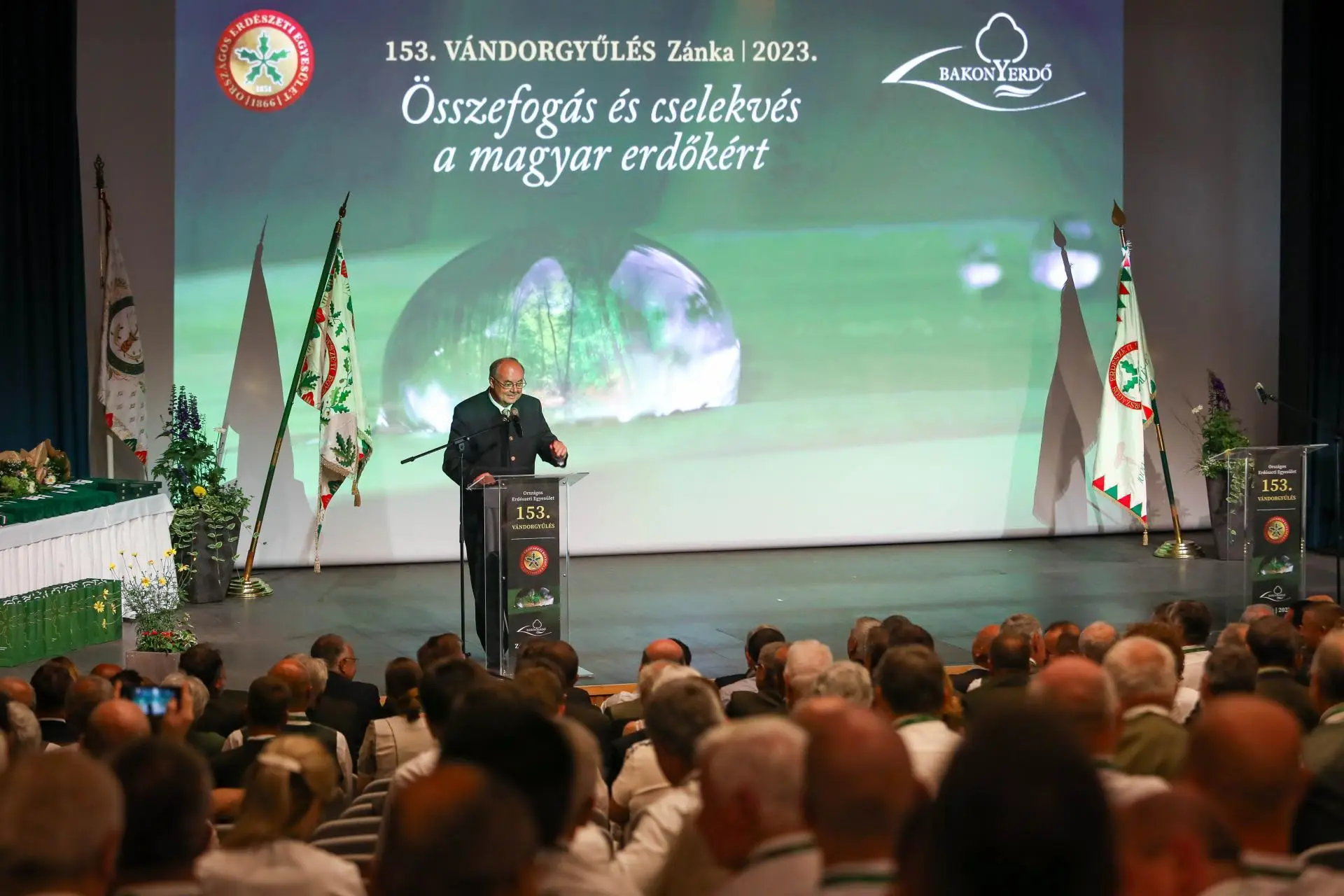 Az 1866-ban alapított, egyik legrégebbi hazai szakmai szervezet minden évben vándorgyűlést szervez, mely a Kárpát-medencei erdészek legfontosabb szakmai találkozója. Az esemény házigazdája idén a Bakony és a Balaton-felvidék erdeit kezelő Bakonyerdő Zrt. volt. Zambó Péter, az Agrárminisztérium erdőkért felelős államtitkára köszöntőbeszédében rámutatott az erdőgazdálkodás előtt álló időszak öt legnagyobb kihívására, és felvázolta a megoldás érdekében eddig megtett lépéseket. Mint fogalmazott, az erdőgazdálkodásnak választ kell adnia a gyorsan változó társadalmi igényekre, amelyre az ökoszisztéma szolgáltatások rendszerének teljességét figyelembe vevő gazdálkodás kínálja a megoldást. Az Agrárminisztérium elkötelezett az erdők fenntarthatóságra alapozott használata mellett, mondta az államtitkár. Fontos kihívásként emelte ki a klímaváltozás kezelését, a magán erdőgazdálkodás megerősítését és fejlesztését, a modern szakmai tudás megszerzését és folyamatos fejlesztését, valamint az ismeretterjesztés, a tájékoztatás és szemléletformálás területét.