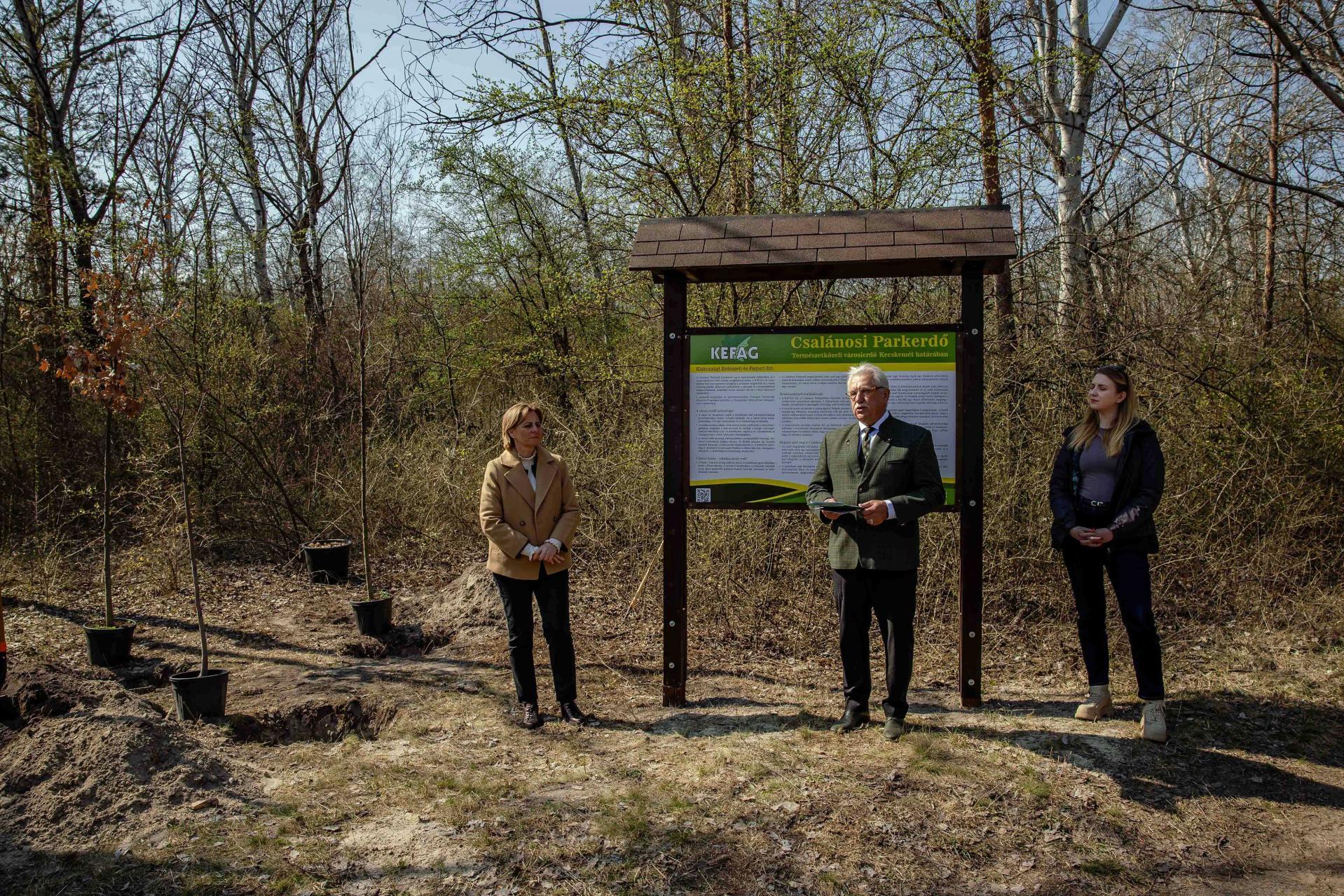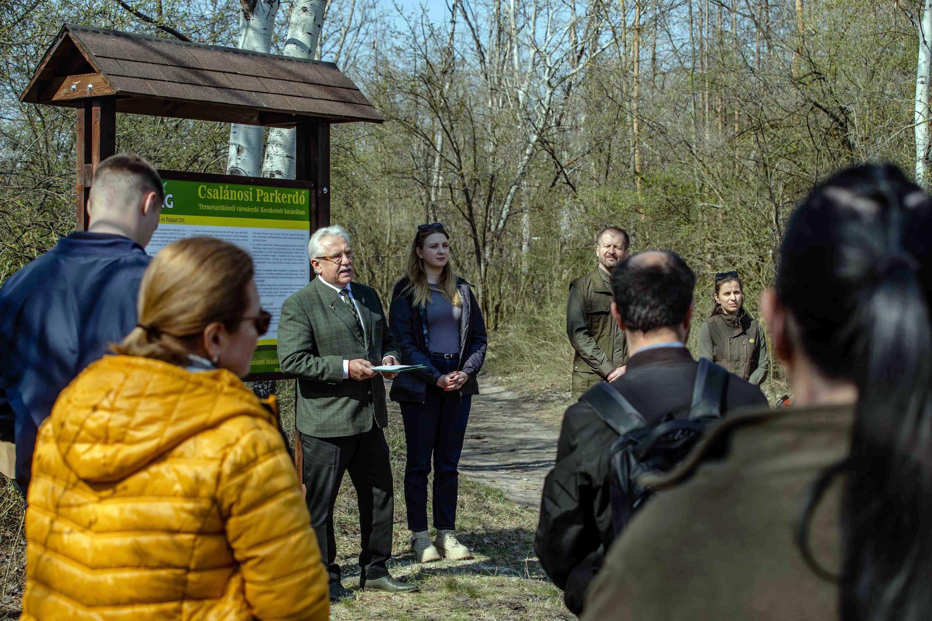 Mocz András kifejtette, Kecskeméten a több mint fél évszázados Csalánosi Parkerdőben a felelős, adatalapú megközelítés gyakorlati megvalósulása látható, amelyet a helyi állami erdészeti társaság, a KEFAG Erdészeti és Faipari Zrt. fordít le konkrét tevékenységekre. A Városierdő-fejlesztési Mintaprogram öt helyszíne közül a legélesebben itt jelennek meg az erdő fennmaradásával kapcsolatos kérdések. Az Alföldön ugyanis nem lehet átvenni más térségek erdőkezelési mintáit. A vízmegtartás, a talajállapot, a fafajválasztás és az erdőszerkezet kérdései más súllyal jelennek meg. Az a munka, amely ezen a helyen zajlik, azt célozza, hogy az erdő szerkezete és működése igazodjon ezekhez a feltételekhez. Új élőhelyi elemeket alakítanak ki, őshonos fajokkal váltják ki a pusztuló fenyőket, rönkgátak épülnek, növelik a holtfa mennyiségét. Az így kezelt növényzet ellenállóbb lesz a klímaváltozás negatív hatásaival szemben, és a megmaradó erdőkre lehet alapozni a rekreációs szolgáltatásokat: eltávolították a veszélyes fákat, kitisztították az elhagyatott sétautak nyomvonalát, felújították az információs táblákat. A munka eredményeként a Parkerdő a kecskeméti zöldinfrastruktúra értékes eleme maradhat – fűzte hozzá.